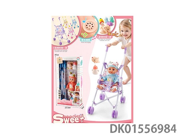 11 Inch pajamas, white skin doll, handcart, and accessories
