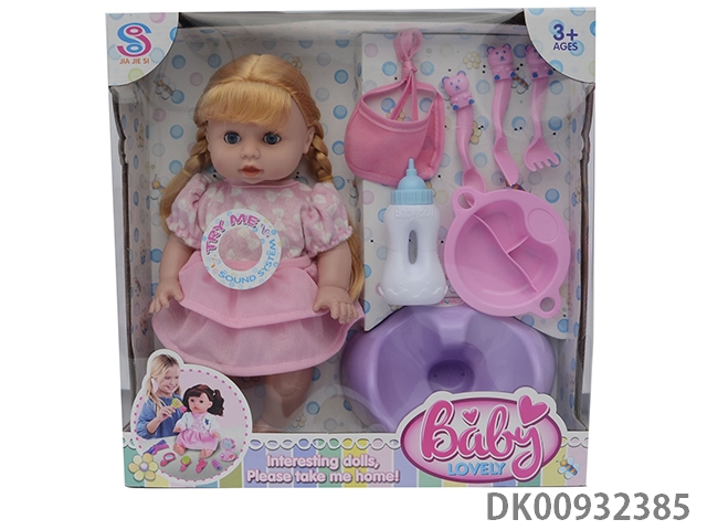 14 Inch tableware doll set with 6-tone ic drinking function 2 colors