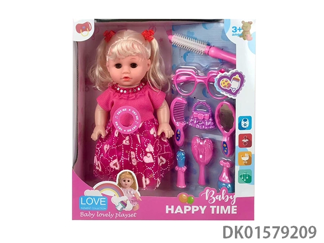 12 Inch blow bottle fixed eye drinking water female doll with glasses, hammer, earpiece, 45cm plastic cart, without ic