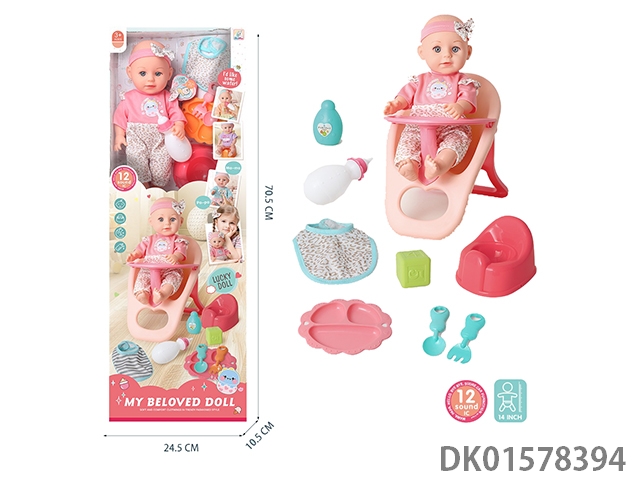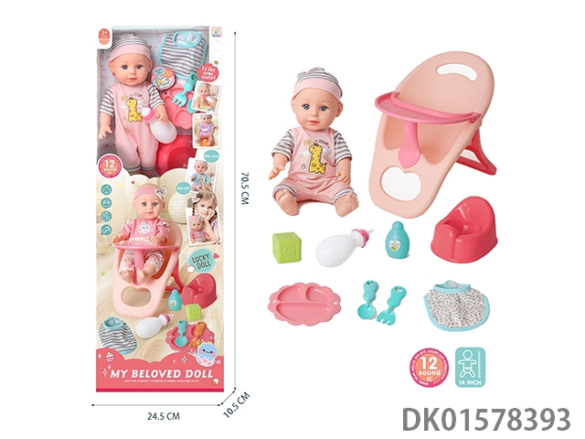 14 Inch vinyl doll with 12 sound music and baby dining chair care set (including 3 ag13 batteries)