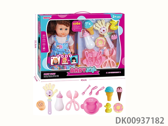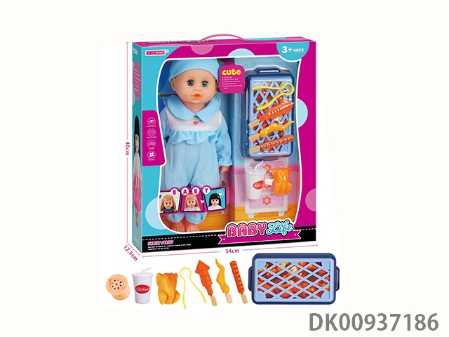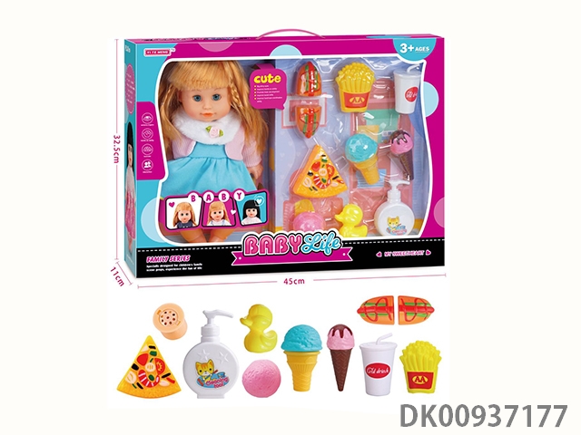 14 Inch tableware doll set with 6-tone ic drinking function 2 colors