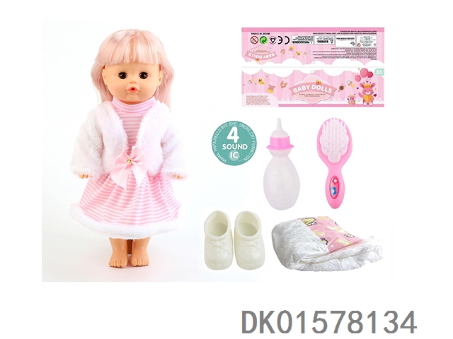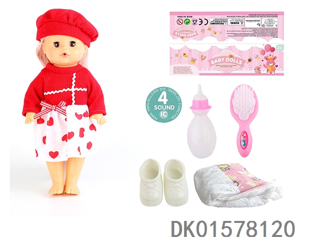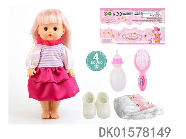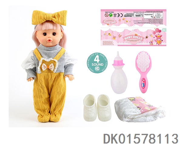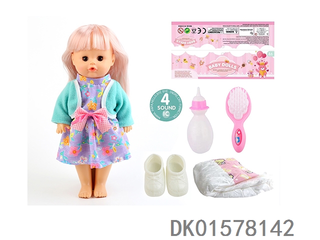 14 Inch doll with active eyes, 33cm, bent feet for drinking water and urinating with 4 sound ic bottle, comb, diaper, shoes