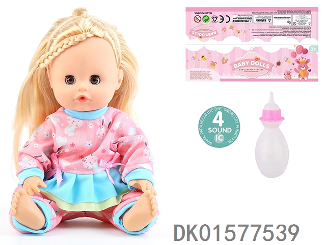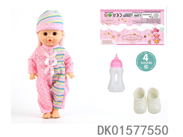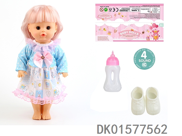 14 Inch doll with active eyes, 30cm, bent feet, drinking water, urinating with 4 sound ic, bottle