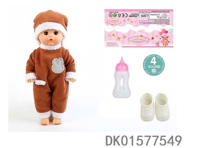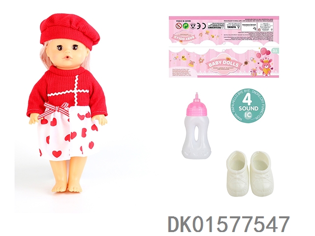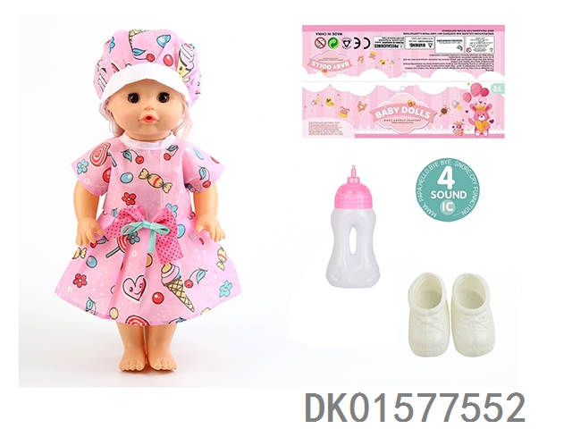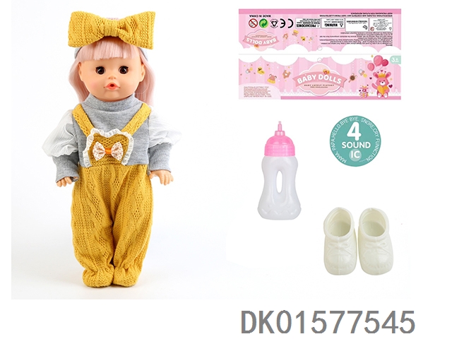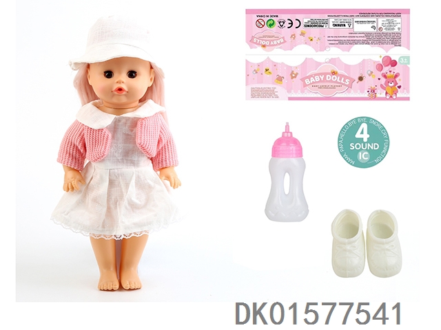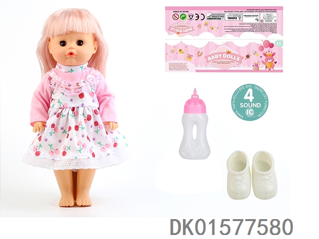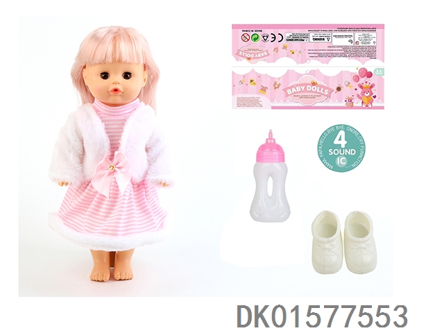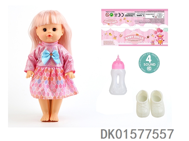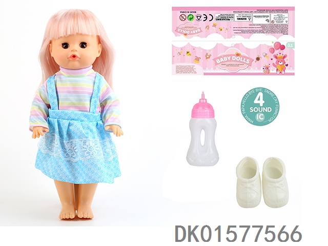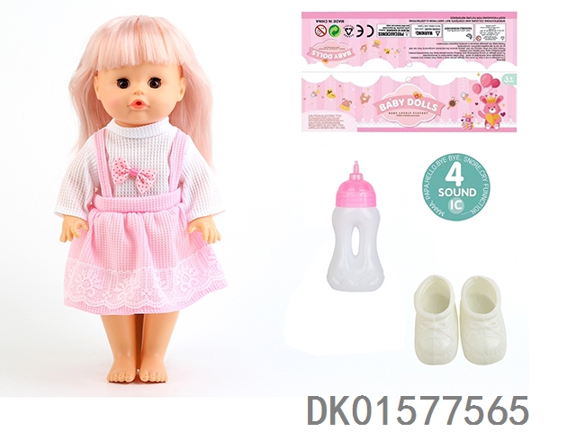 14 Inch doll with active eyes, 33cm straight leg water and urine dispenser, 4-speaker ic, bottle, shoes