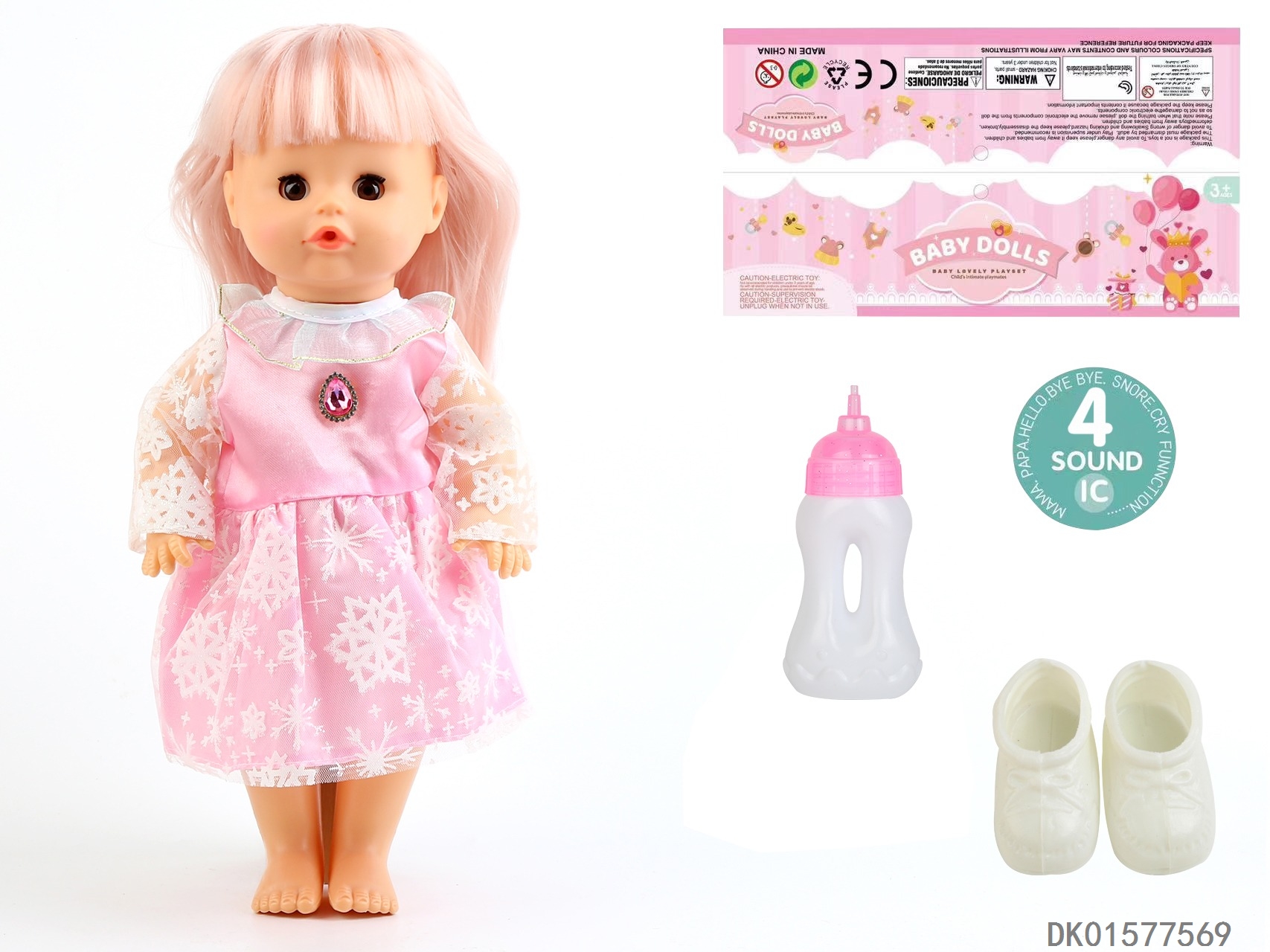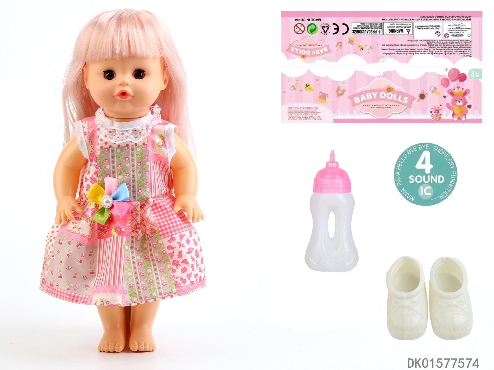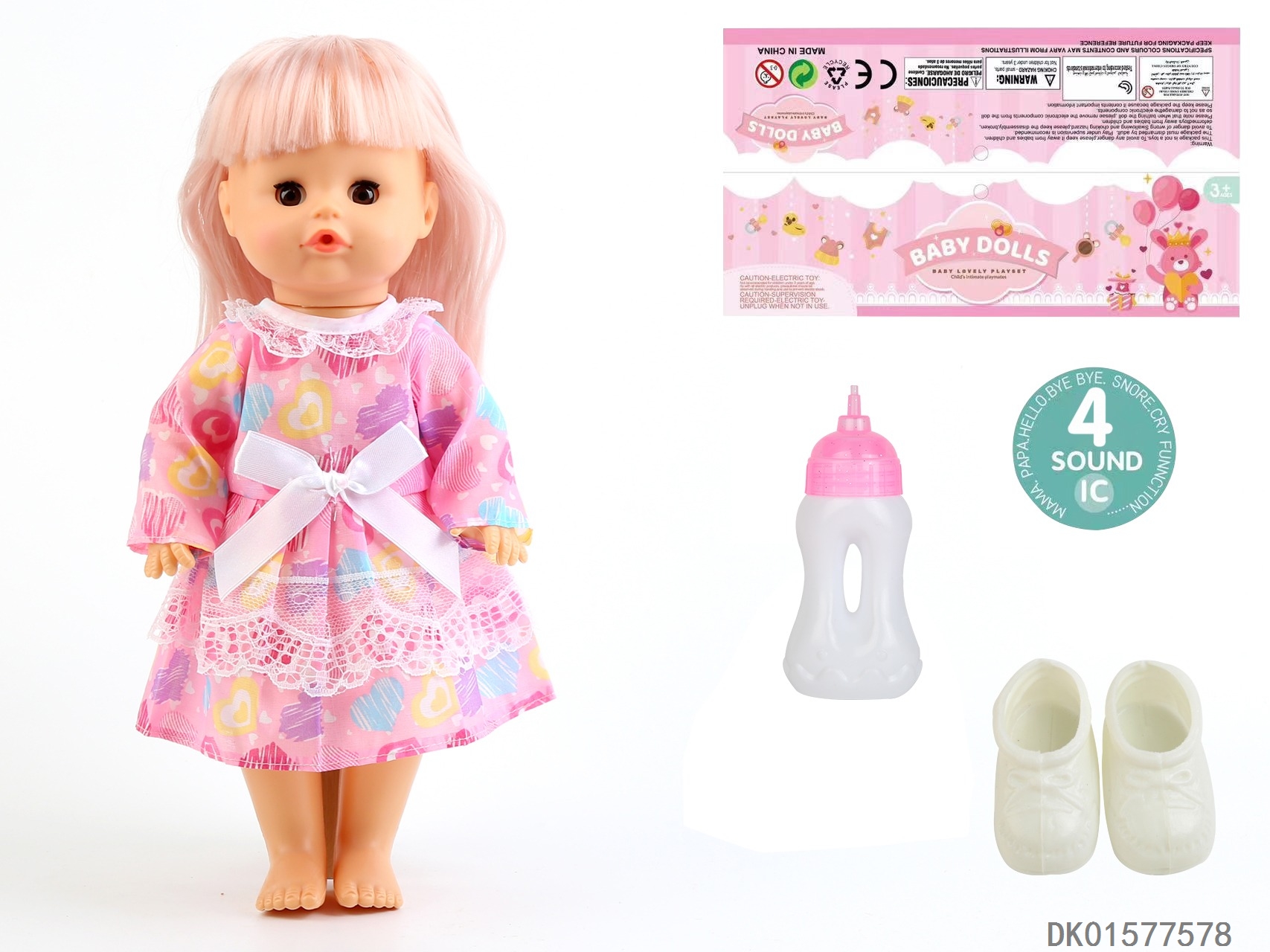 14 Inch doll with active eyes, 33cm straight leg water and urine dispenser, 4-speaker ic, bottle, shoes