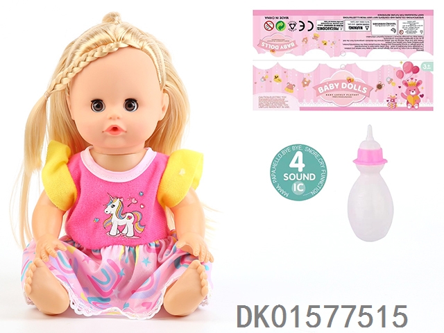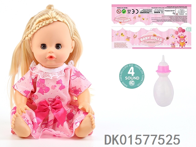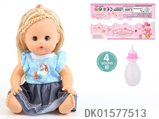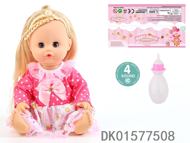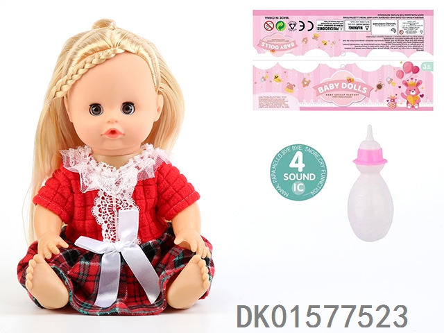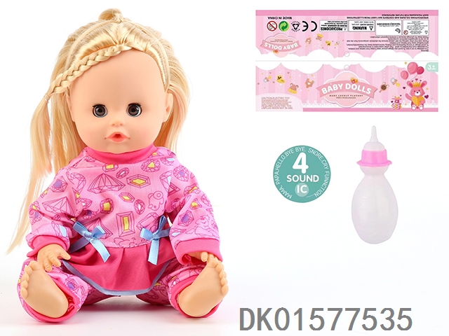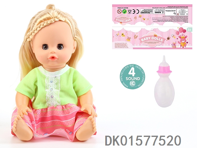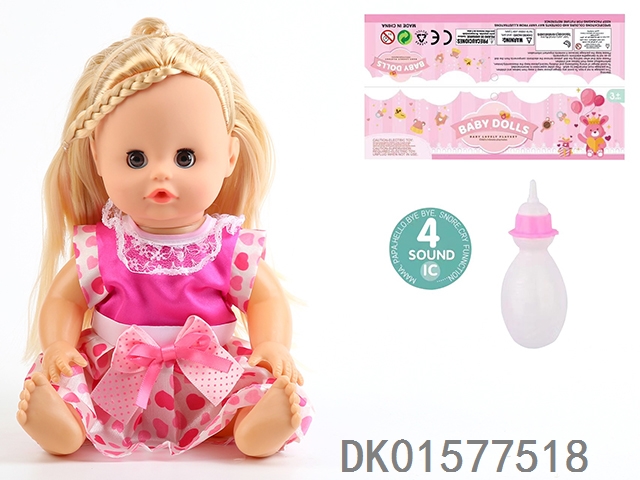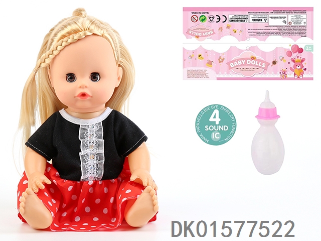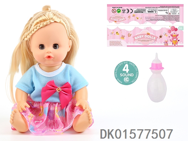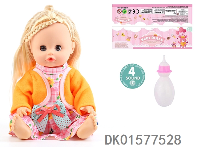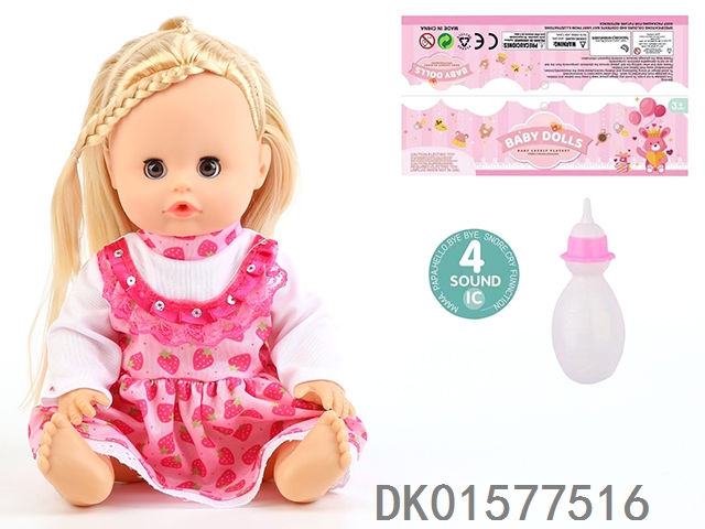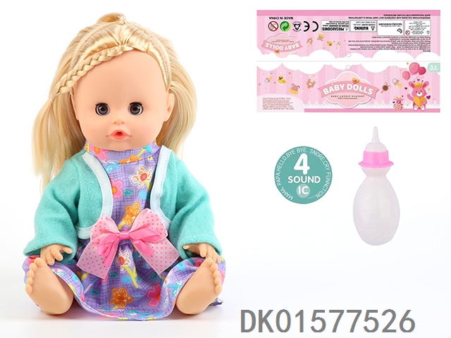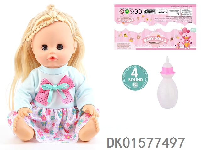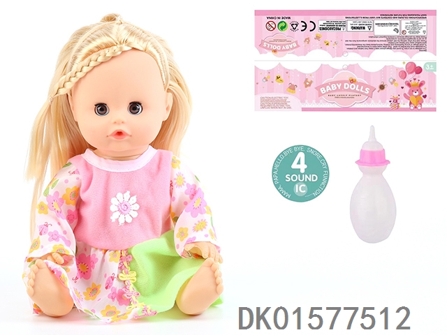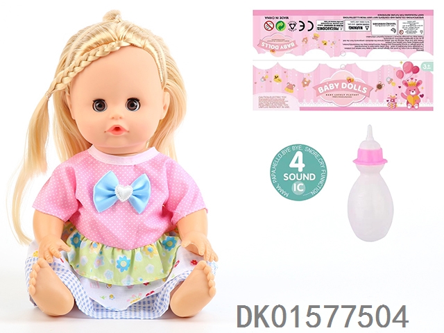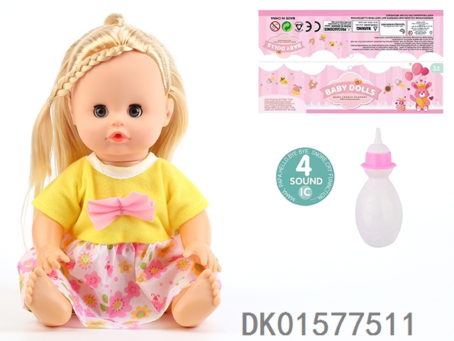 14 Inch doll with active eyes, 30cm, bent feet, drinking water, urinating with 4 sound ic, bottle