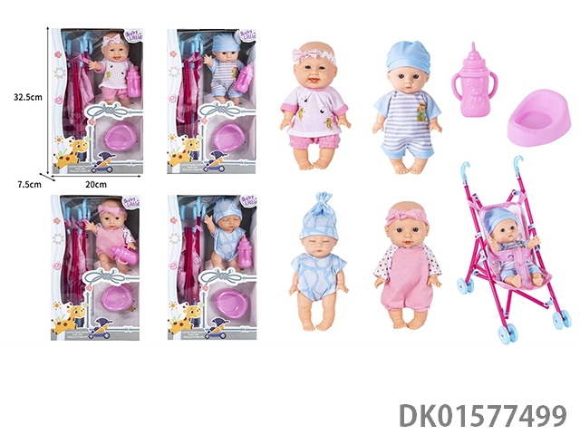 19Cm 8-inch vinyl body simulation doll with handcart, bottle, toilet