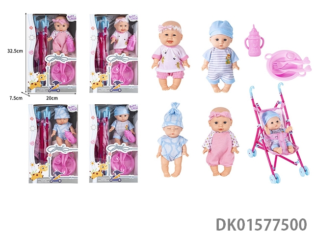 19Cm 8-inch vinyl body simulation doll with handcart, bottle, and plate