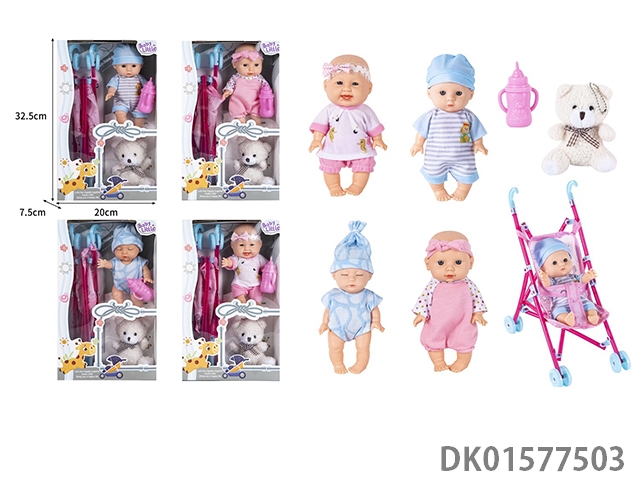 19Cm 8-inch vinyl body simulation doll with handcart, bottle, cotton bear