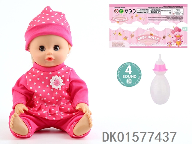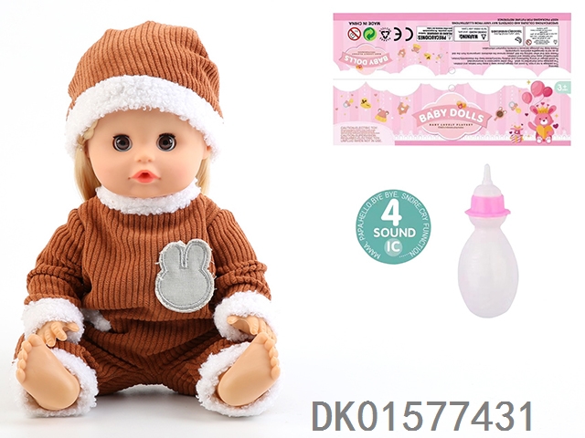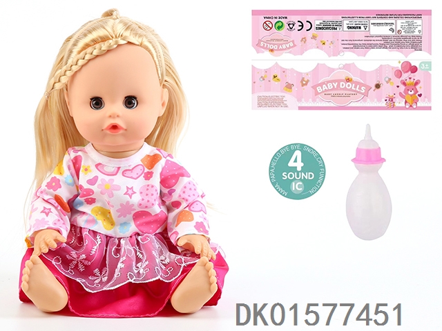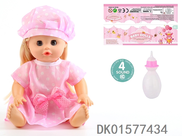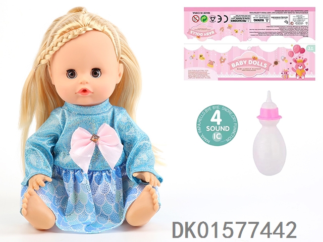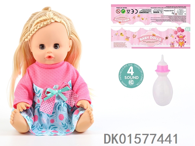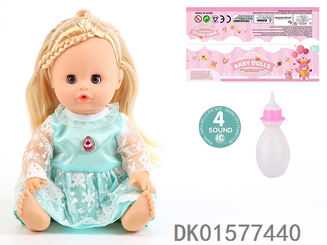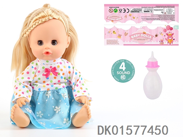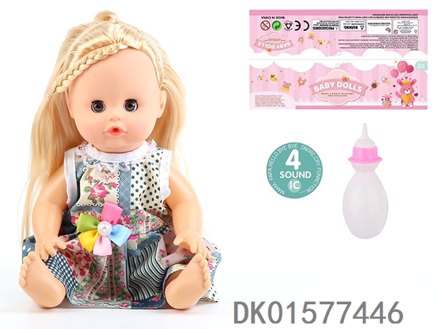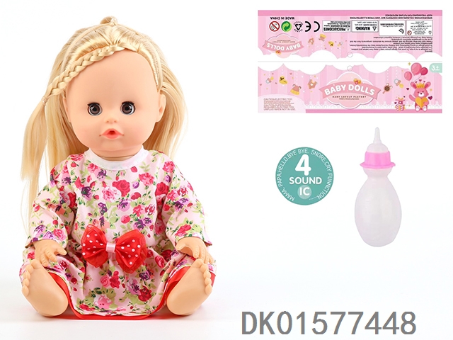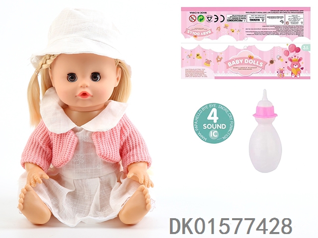 14 Inch doll with active eyes, 30cm, bent feet, drinking water, urinating with 4 sound ic, bottle