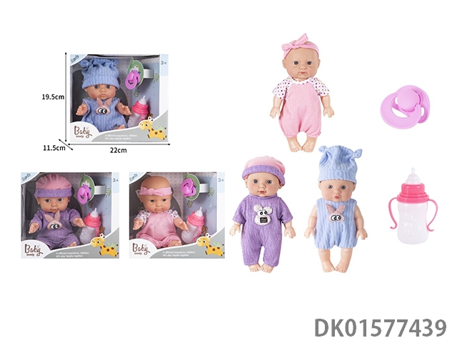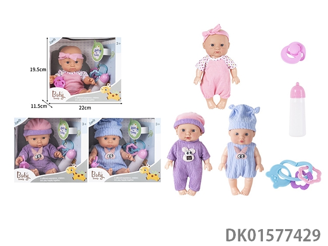 24Cm vinyl body doll simulation doll with bottle, bell, pacifier