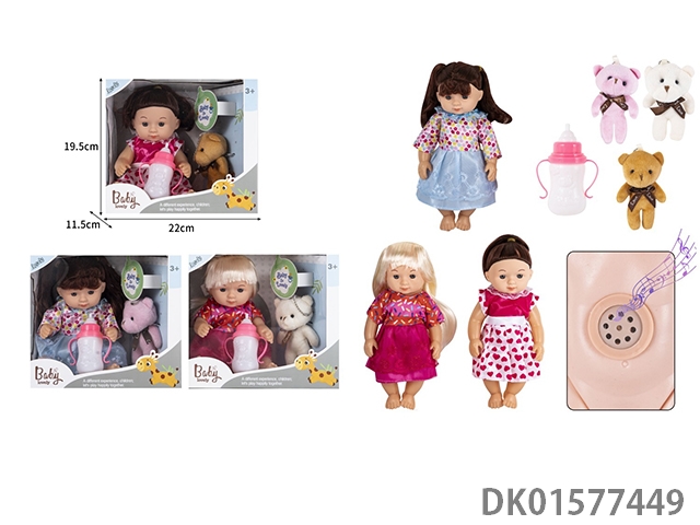 24Cm girl empty simulation doll with ic, bottle, cotton bear