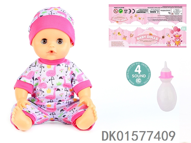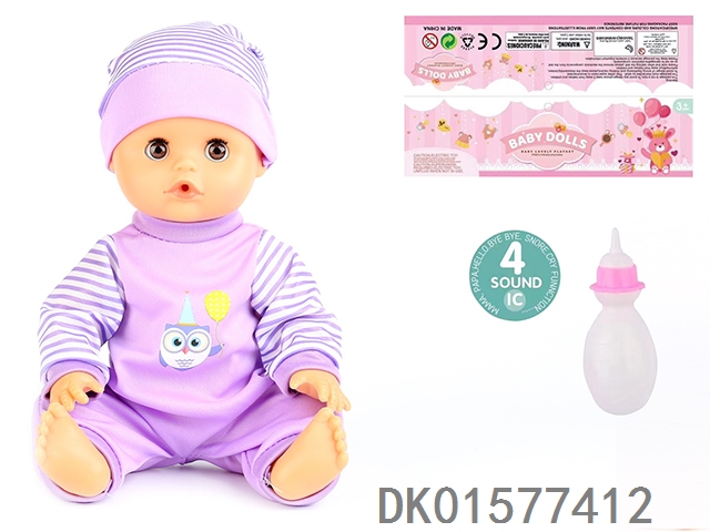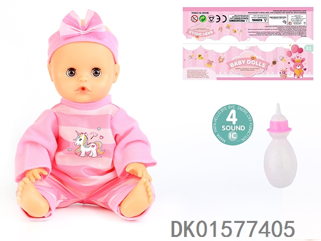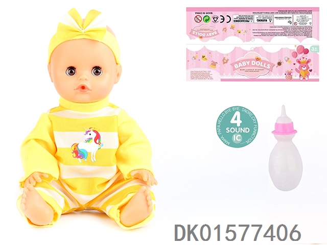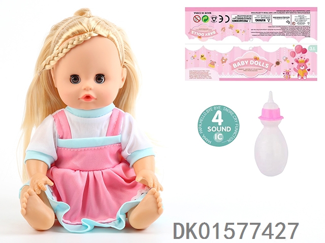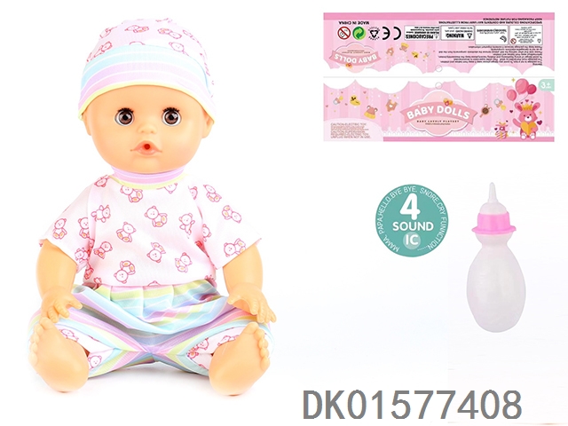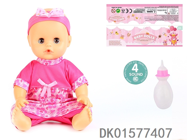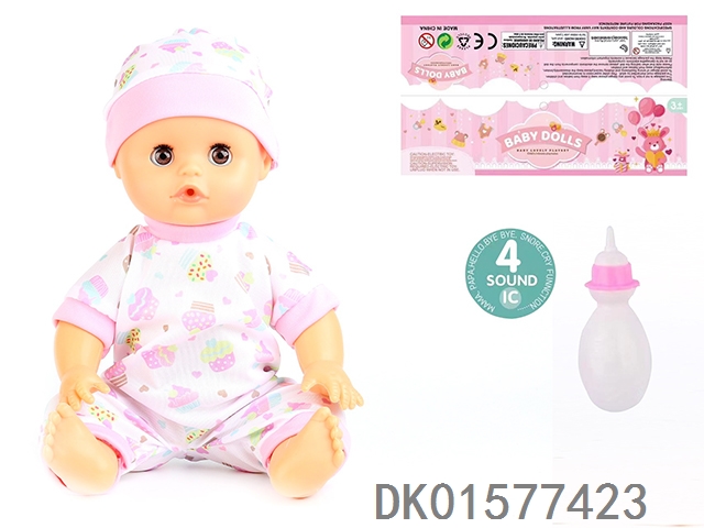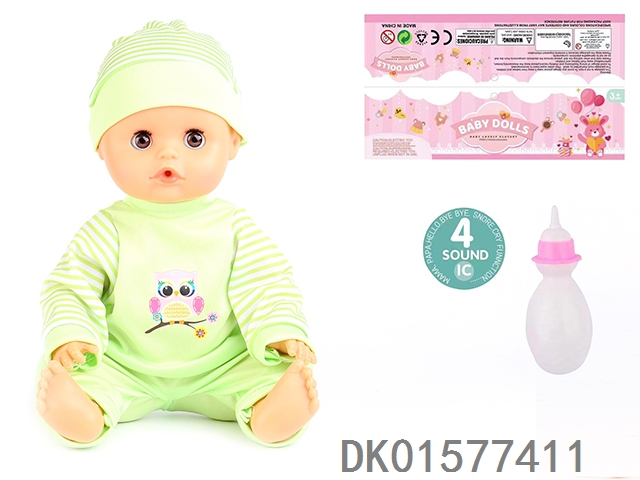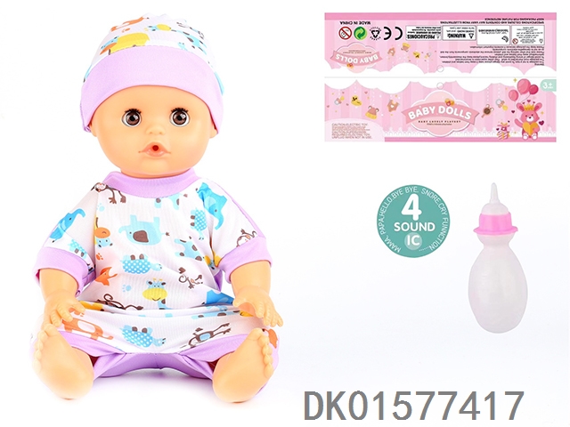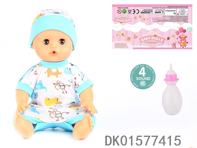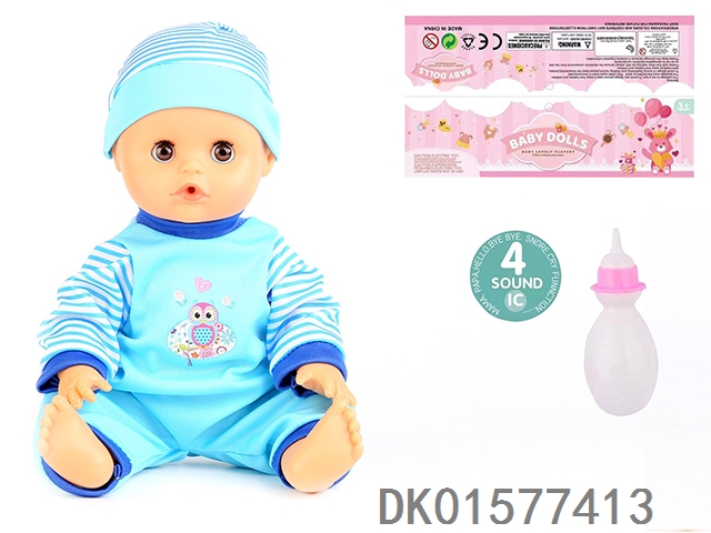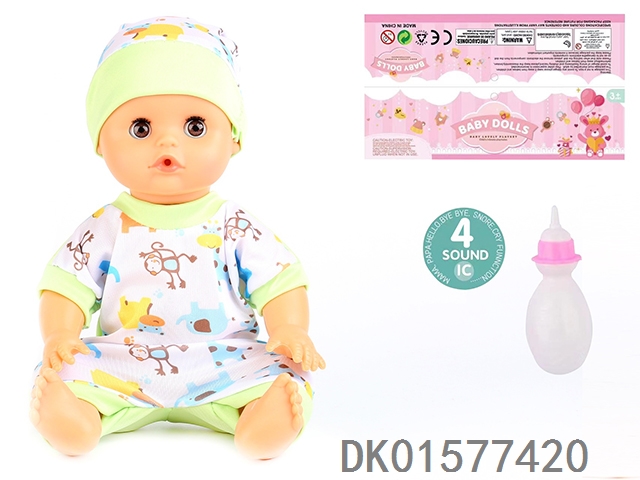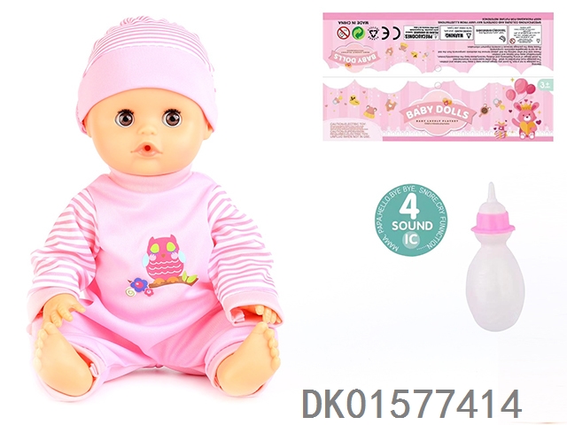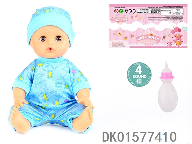 14 Inch doll with active eyes, 30cm, bent feet, drinking water, urinating with 4 sound ic, bottle
