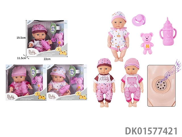 24Cm vinyl body doll simulation doll with ic, bottle, nipple, cotton bear