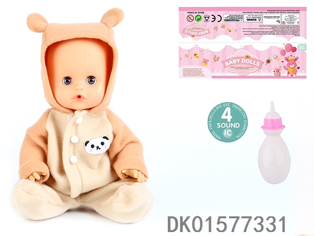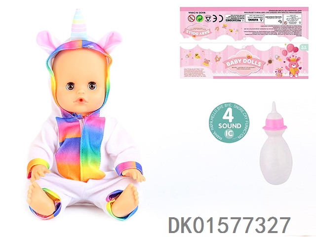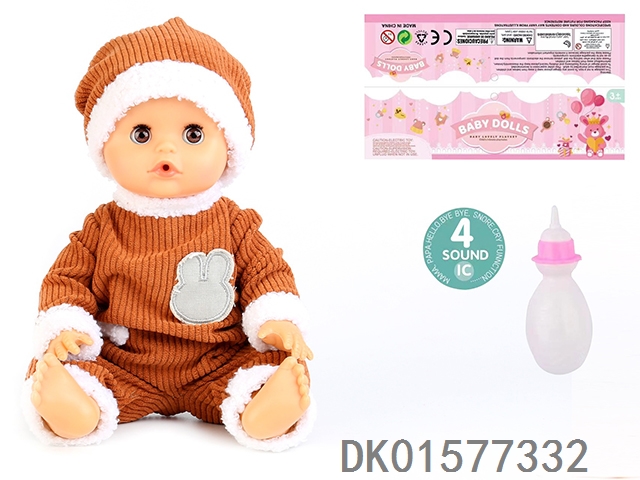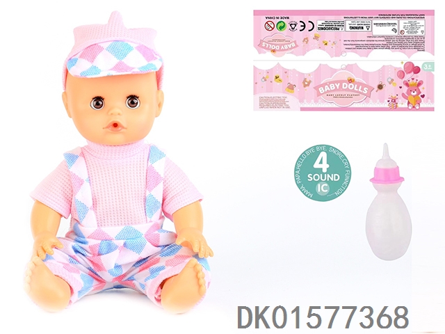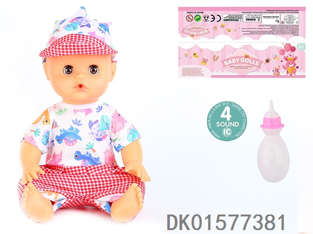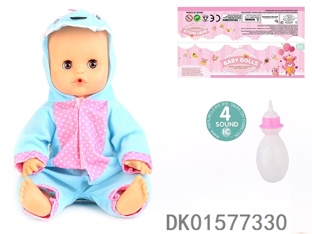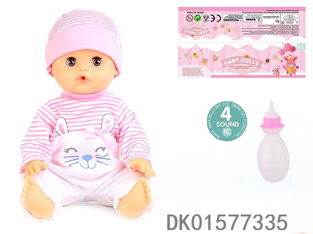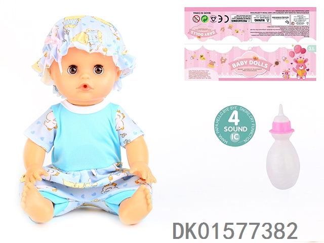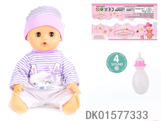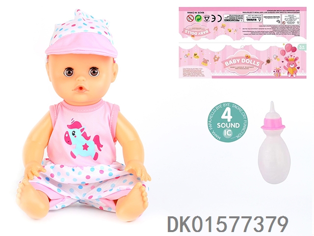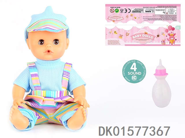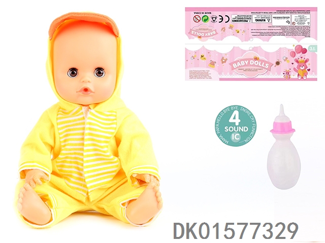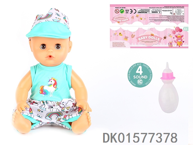 14 Inch doll with active eyes, 30cm, bent feet, drinking water, urinating with 4 sound ic, bottle