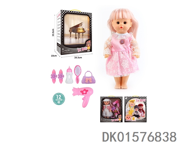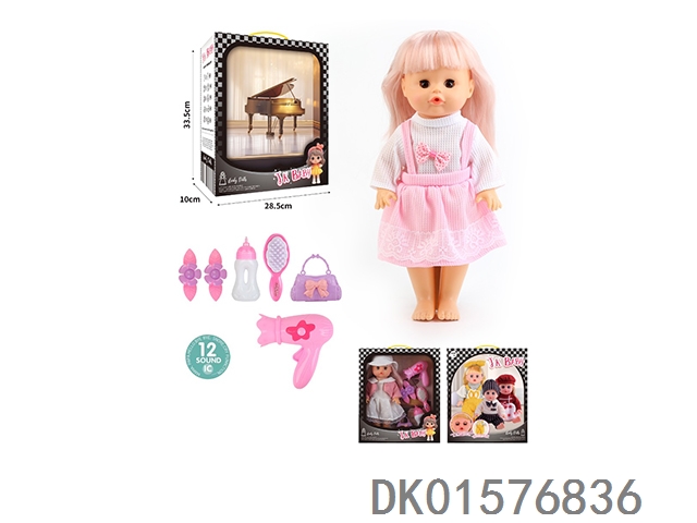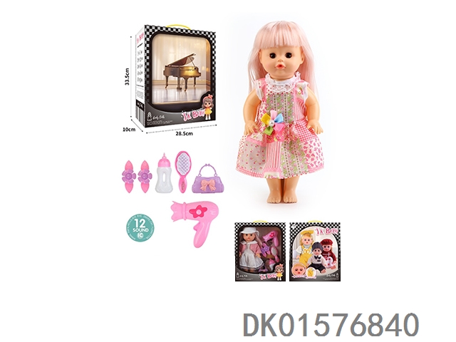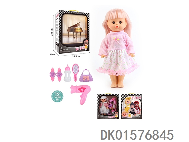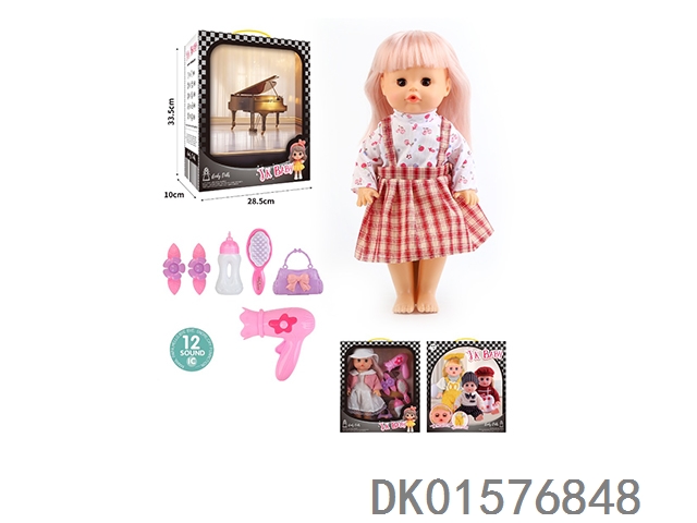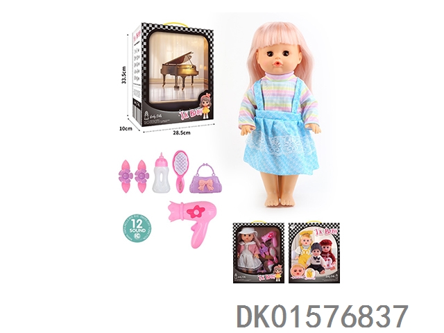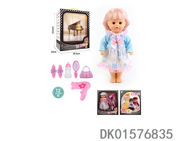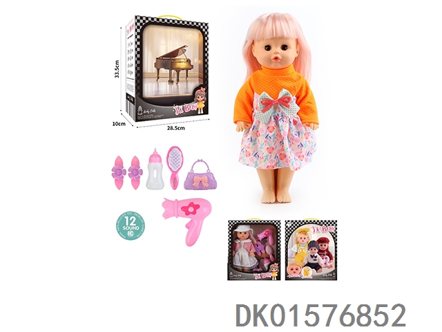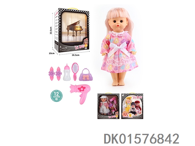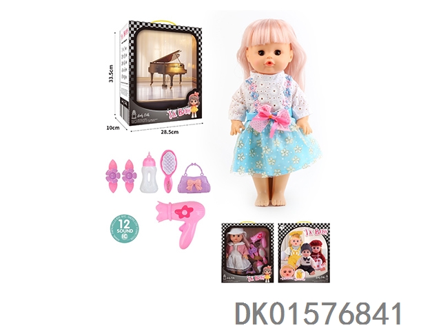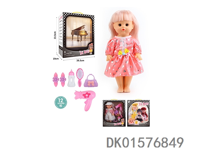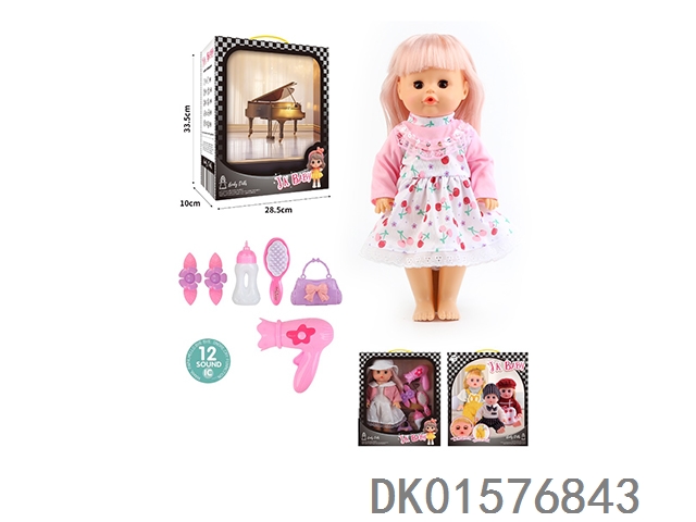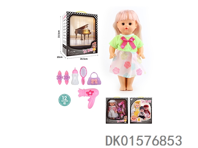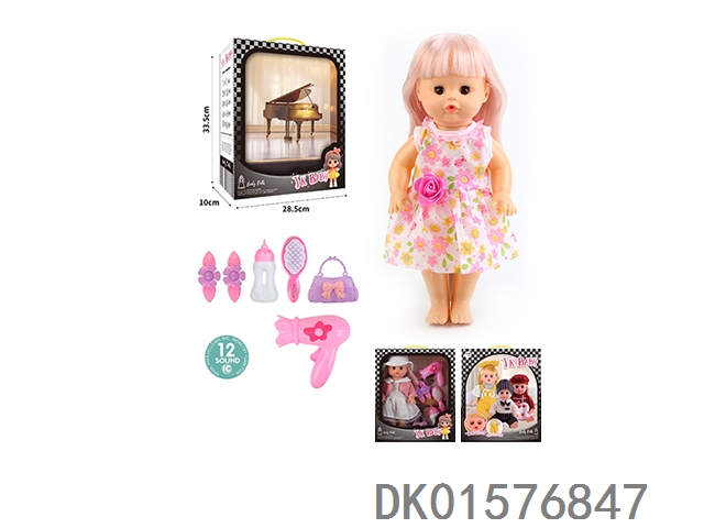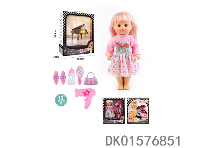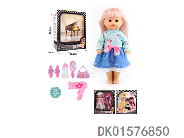 14 Inch doll 33cm straight footed active eye doll drinking water and urinating with 12 sound ic hair clip, bottle, comb, bag, hair dryer