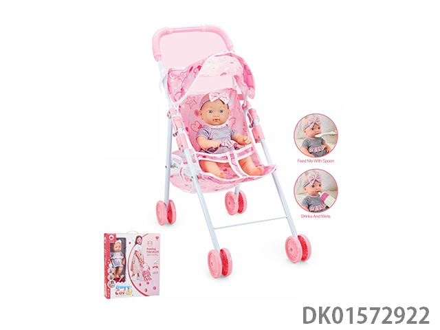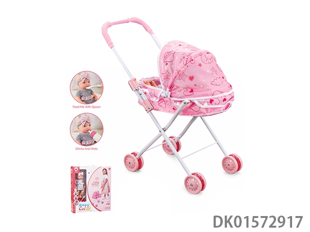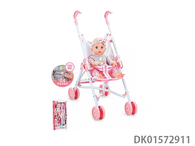 Baby stroller and 12 inch head, hand and foot glue, body blowing with ic, 24 sound water and urine toy