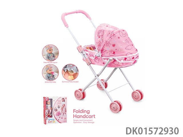 Handcart and 12 inch hand and foot glue body blowing with ic, 24 sound drinking water and urinating doll