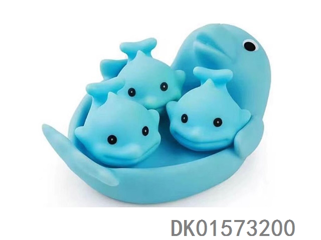 New blue mother and child cute dolphin, playing in water, bb whistle, sound, vinyl soft product 1 large 3 small a bag of 4 pieces