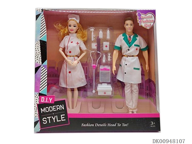 11.5-Inch solid 12 joint nurse and 11.5-inch live hand man doctor with 2 medical blister accessories in a box