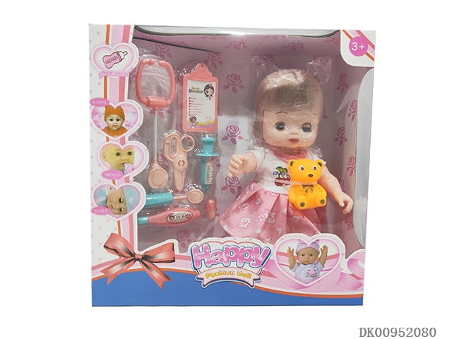 11 Inch full body enamel girl with medical kit set
