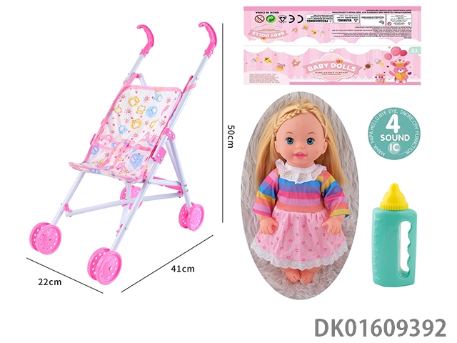 Plastic cart and 14 inch doll with 4-speaker ic bottle