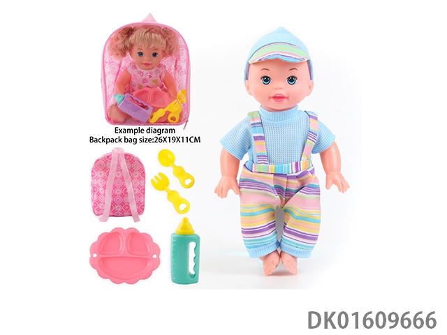 14 Inch doll with 4-speaker ic bottle, tray fork spoon