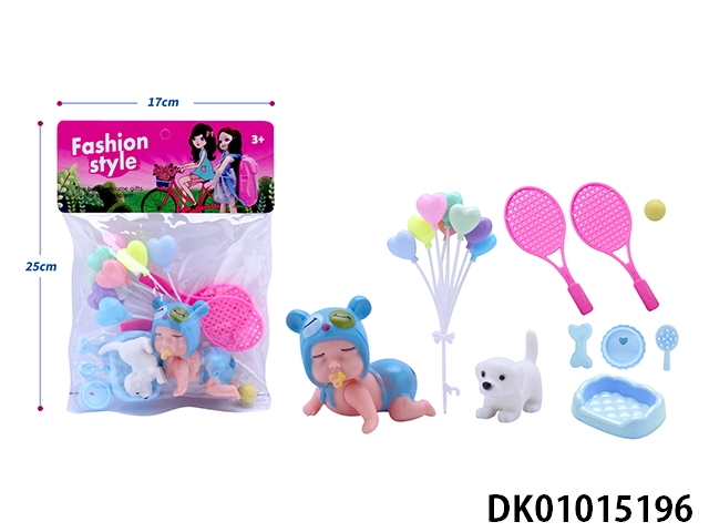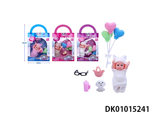 New 5-inch sleeping baby with balloon, baby bottle, pet dog, glasses, handbag accessories