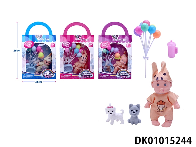 New 6-inch little boy with balloon, pet dog and baby bottle accessories