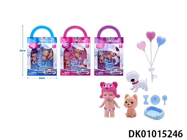 New 3.5 inch real sleeping baby with pet dog, balloon and dog basin accessories