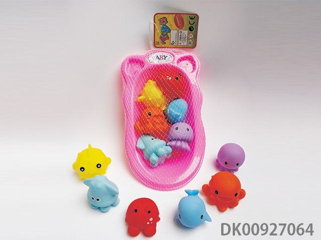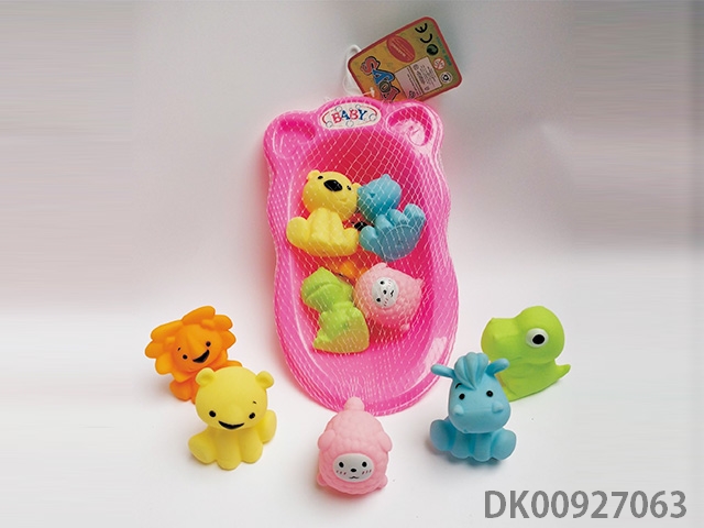 6 Bb soft glue animals with bathtub