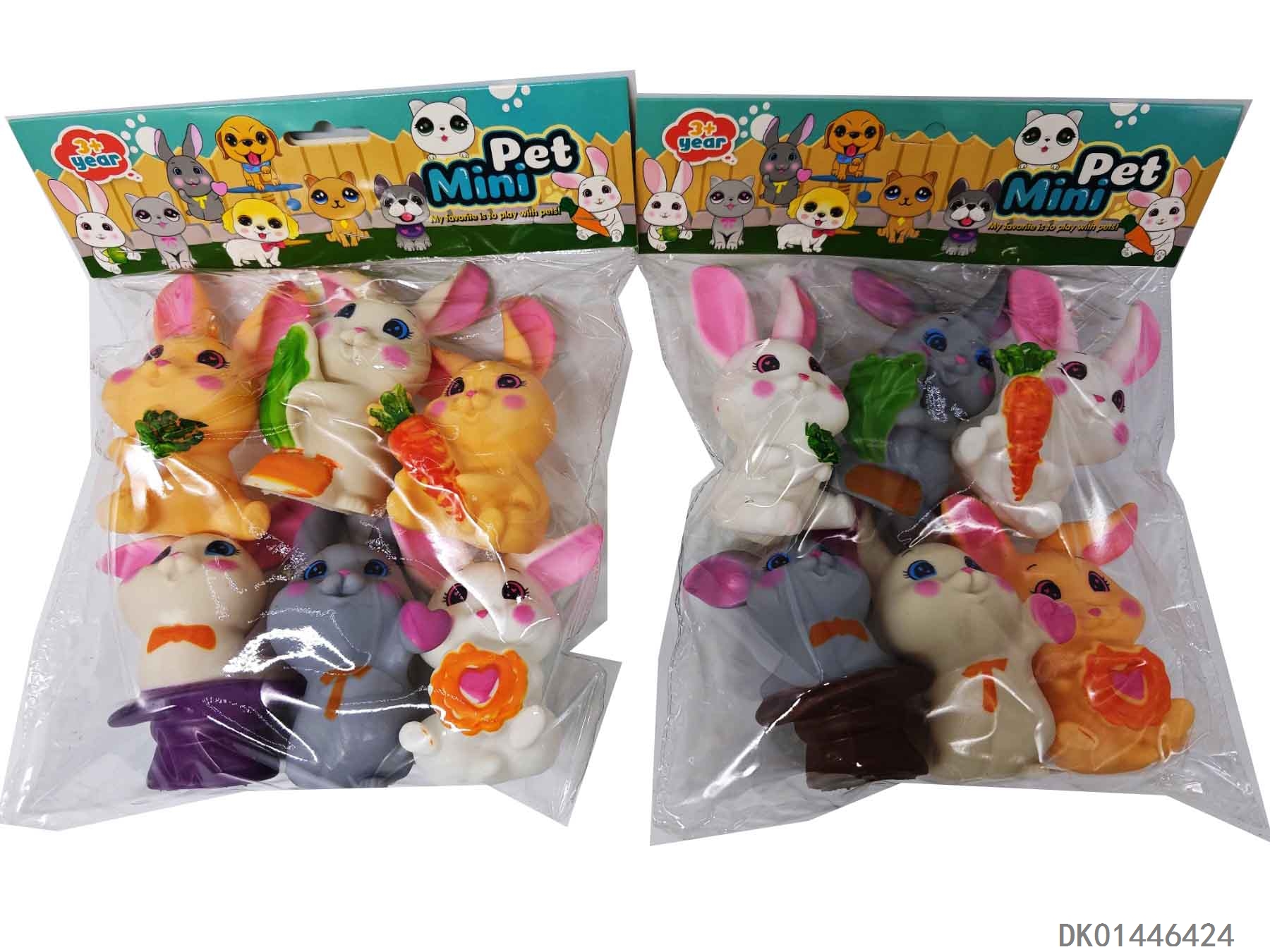 Rubber coated animal rabbit pack of 6