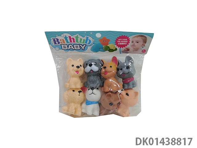 Indoor water play with rubber coated small animals, 4 types, 8 pieces