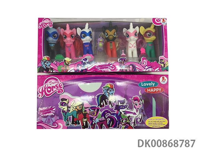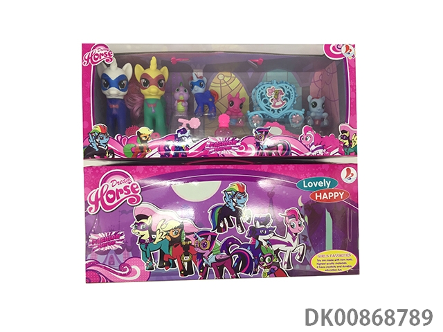 6 Enamel color war horses with enamel dinosaurs with 2 water suction bottles and horse comb, horse mirror and pvc cover