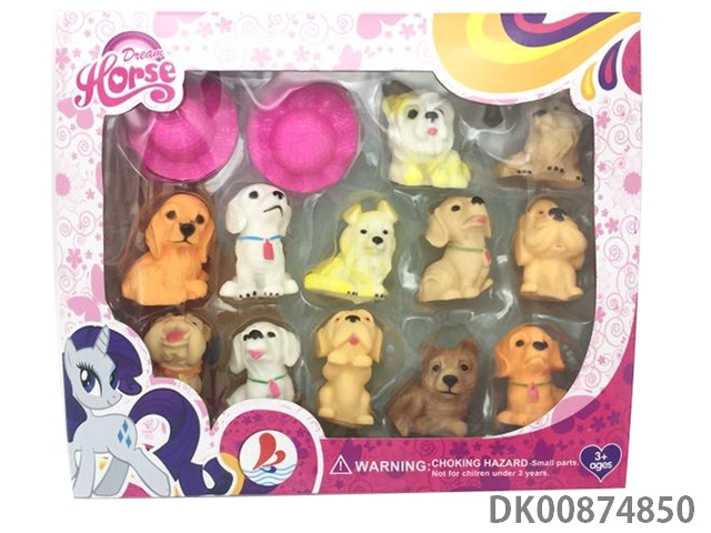 12 Enamel expression dogs mixed with 2 dog hats