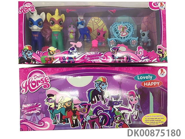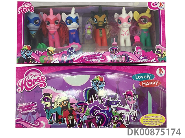 6 Enamel color war horses with enamel dinosaurs with 2 water suction bottles and horse comb, horse mirror and pvc cover