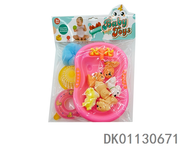 Enamel simulation cute pet dog and swimming pool and fishnet, swim ring and bath ball, bb whistle, voice, soft glue, water animals