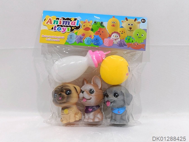 3 Dog balls and a bottle