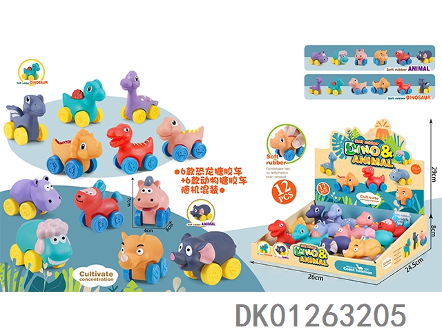 12 Sets of enamel animal dinosaur cars mixed with 12pcs/box