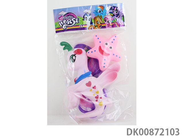 Rubber lined horse with starfish bag, 6-color random mixed packing (horse height: 15cm)