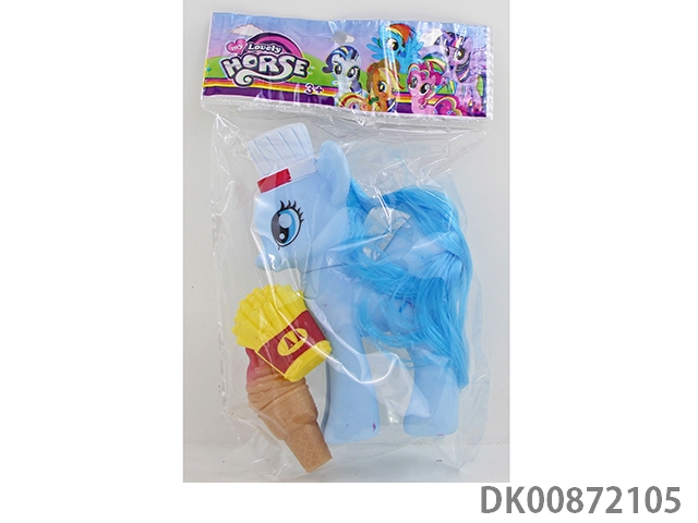 Rubber lined horse with french fries and ice cream bag in 1 color (horse height 15cm)