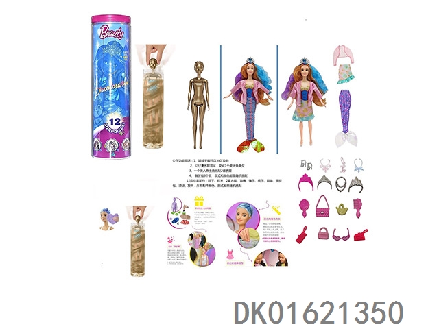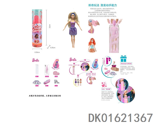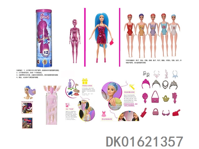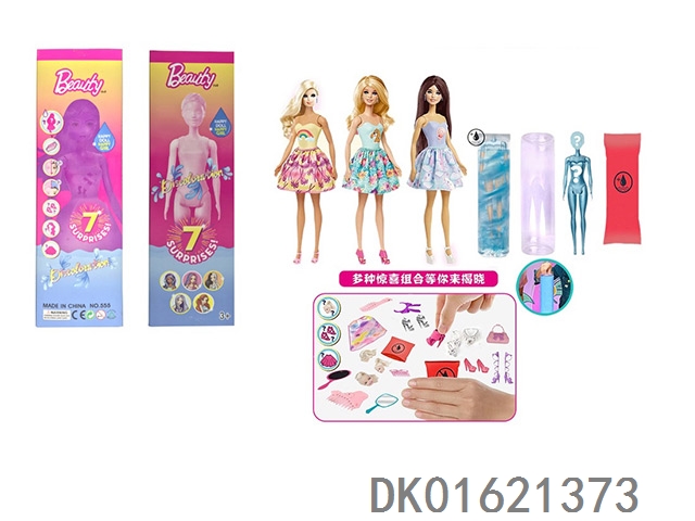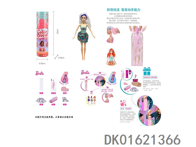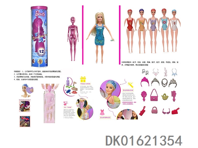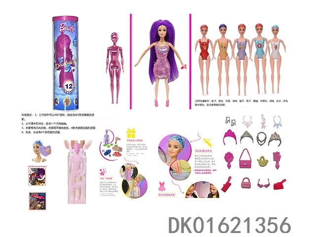 11.5-Inch real-life surprise color changing barbie. comes with 5 different surprise accessories, the doll rotates 360 degrees, 4 randomly mixed 6pcs/box