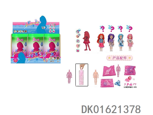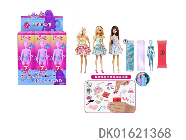 11.5-Inch solid body color changing barbie. comes with different surprise accessories, the doll rotates 360 degrees, 3 randomly mixed 6pcs/box