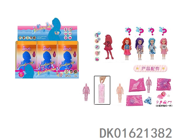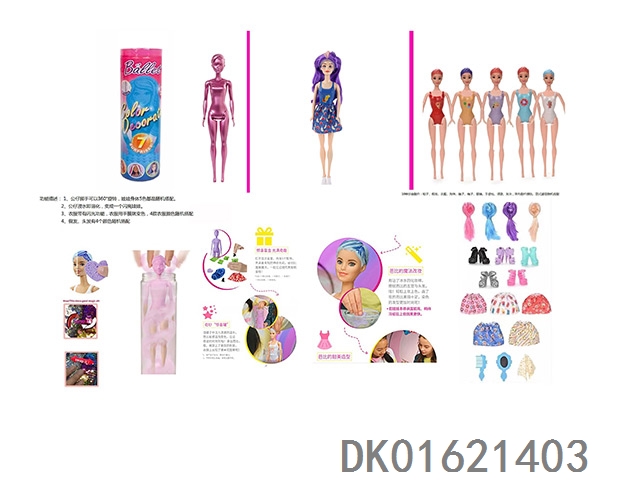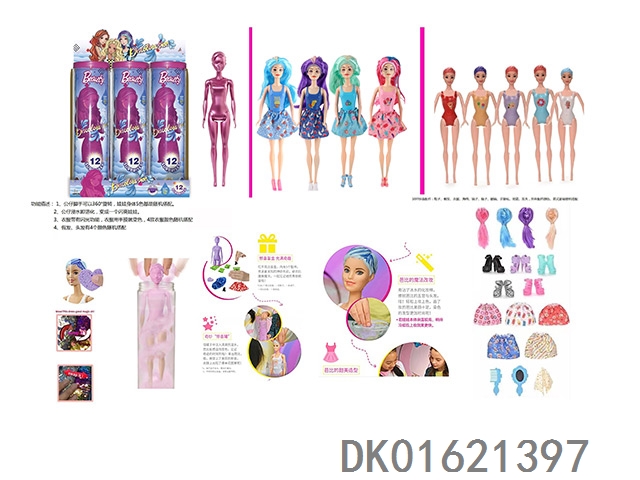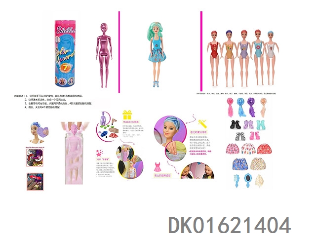 11.5-Inch real-life surprise color changing barbie. comes with 5 different surprise accessories, the doll rotates 360 degrees, 4 randomly mixed 6pcs/box