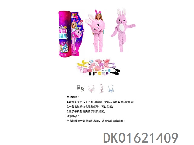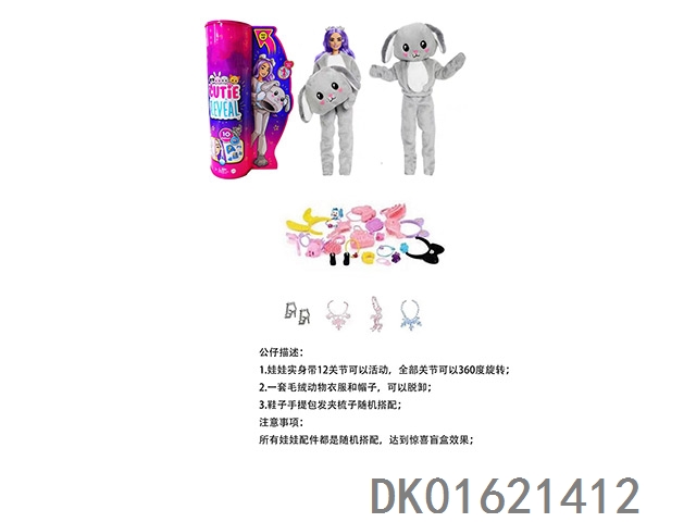 High end surprise 11.5-inch 12 joint solid body card rabbit cute pet barbie with 1 set of animal plush fashion clothes. bring hair clips, handbags, and shoes. 4 accessories for the necklace.