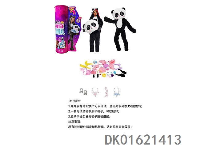High end surprise 11.5-inch 12 joint real-life panda cute pet barbie with 1 set of animal plush fashion clothes. bring hair clips, handbags, and shoes. 4 accessories for the necklace.