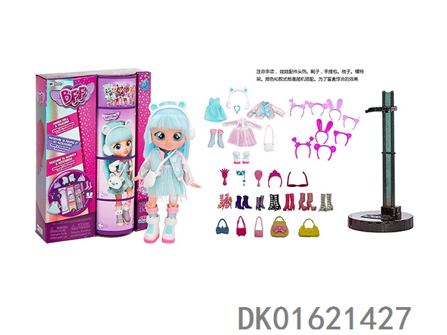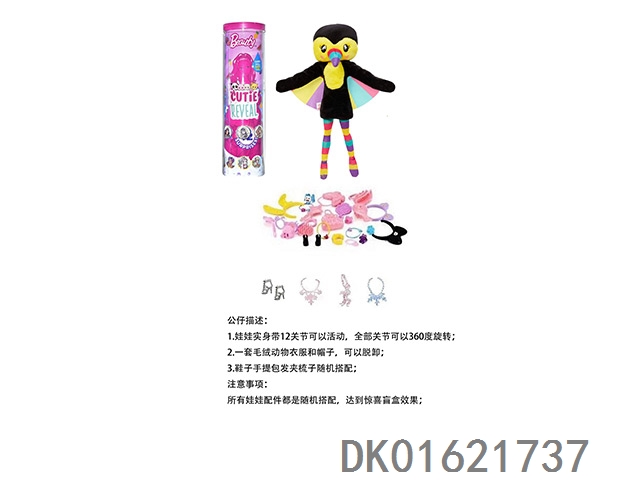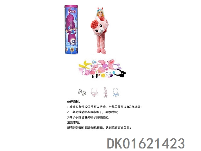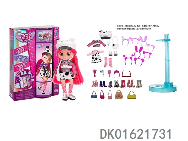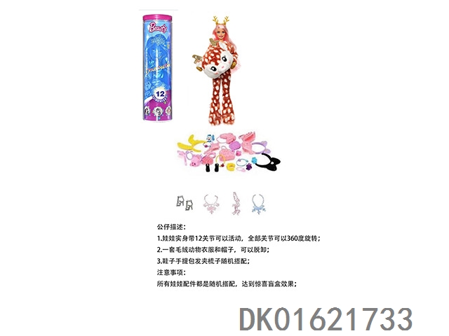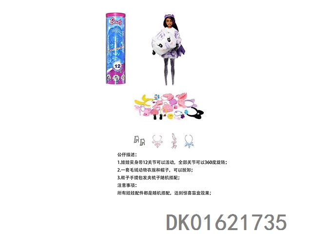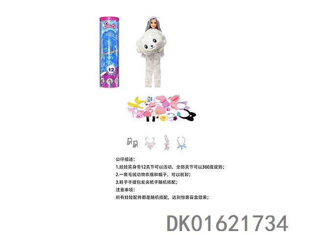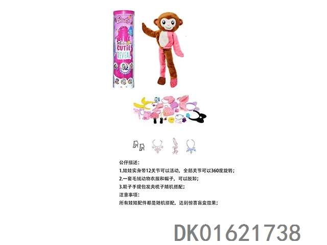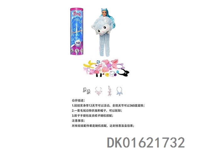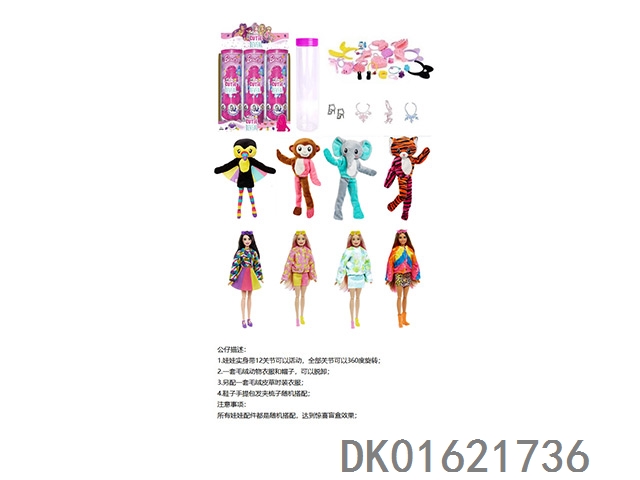 High end surprise 11.5-inch 12 joint real-life cute pet barbie with 1 set of animal plush fashion clothes. bring hair clips, handbags, and shoes. 4 accessories for the necklace. there are 2 sets of clothes, 4 styles, 6pc mixed, 6pcs/box