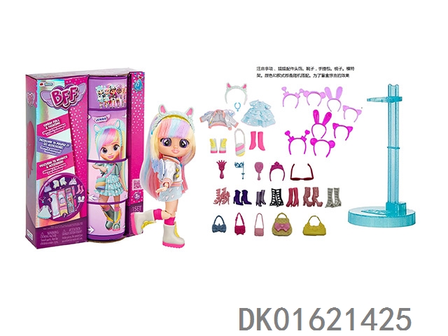 High end cry babies bff 1.15-inch 11 joint solid rainbow crying barbie doll with 5 surprise accessories hair clip. handbag. shoes a comb. a model stand