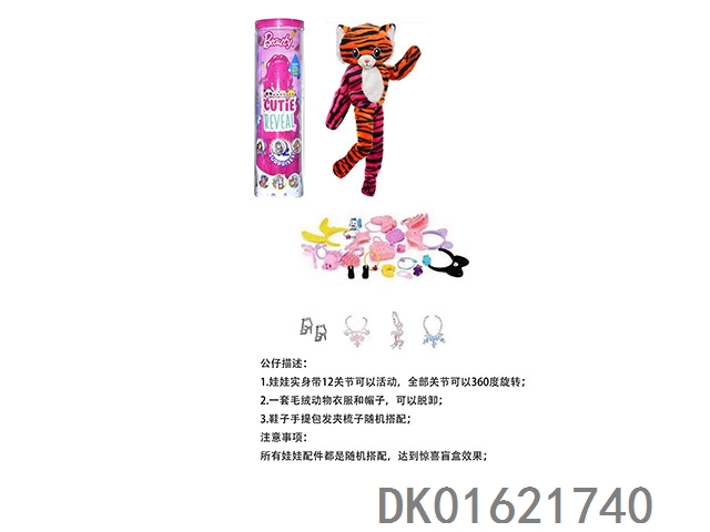 High end surprise 11.5-inch 12 joint real tiger cute pet barbie. bring hair clips, handbags, and shoes. 4 accessories for the necklace.