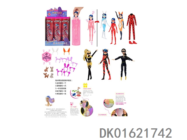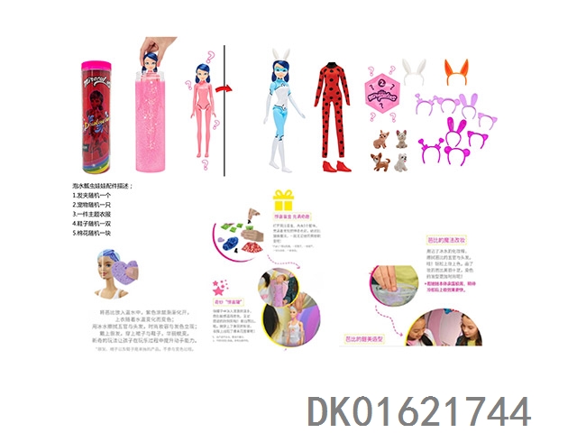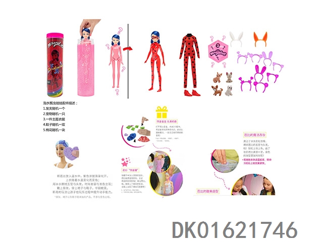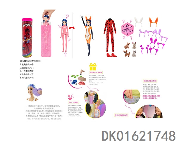 11.5 Inch body water soaked color changing miraculous floating insect reddy series with hair clip. shoes, expansion sponge, small pet 4 different surprise accessories 6 models 6pc mixed 6pcs/box